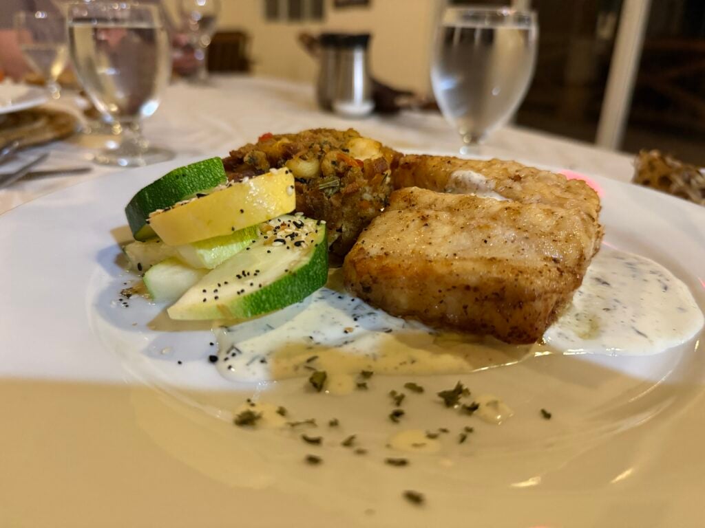 Stacy is the reason the food side of this trip exceeded every expectation I had. Known around the lodge as “Mama Dumpling,” she’s a genuine chef who sharpened her skills with a stint in Italy before bringing it all back to Andros. Everything she put out was built around fresh, never frozen local seafood, which was not something I was expecting when I booked a bonefishing trip. The fresh grouper that first night set the tone. From there it only got better.