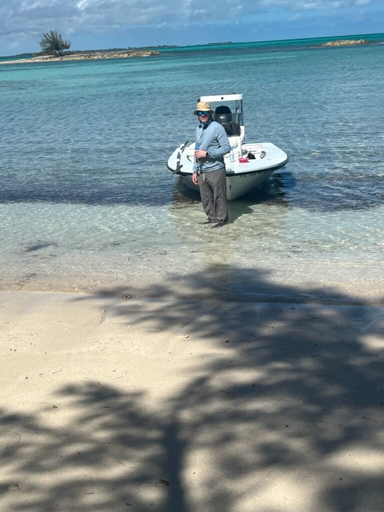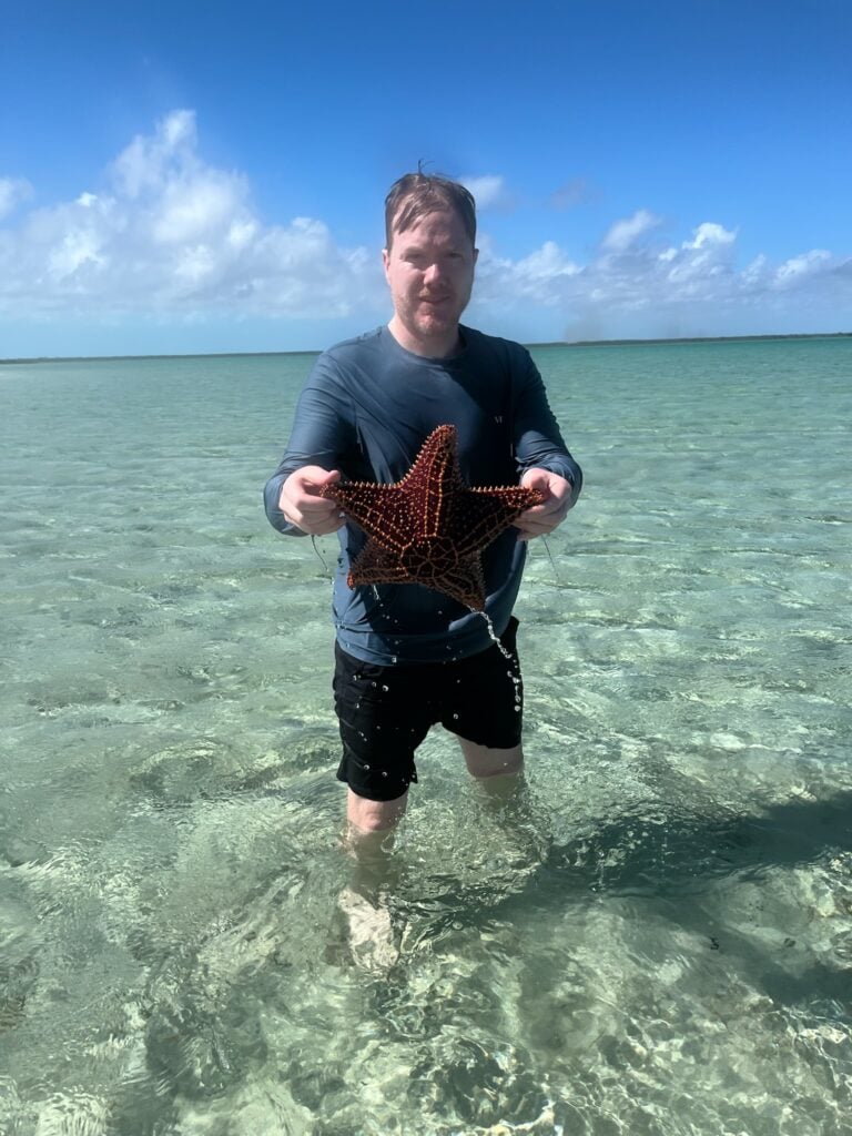 Chris and I jumped in for a swim in three feet of water, perfect visibility, and the bottom was covered in hundreds of conch. We found a large starfish sitting in the sand. It’s the kind of thing you don’t expect on a fishing trip and it made the lunch break feel like something else entirely.