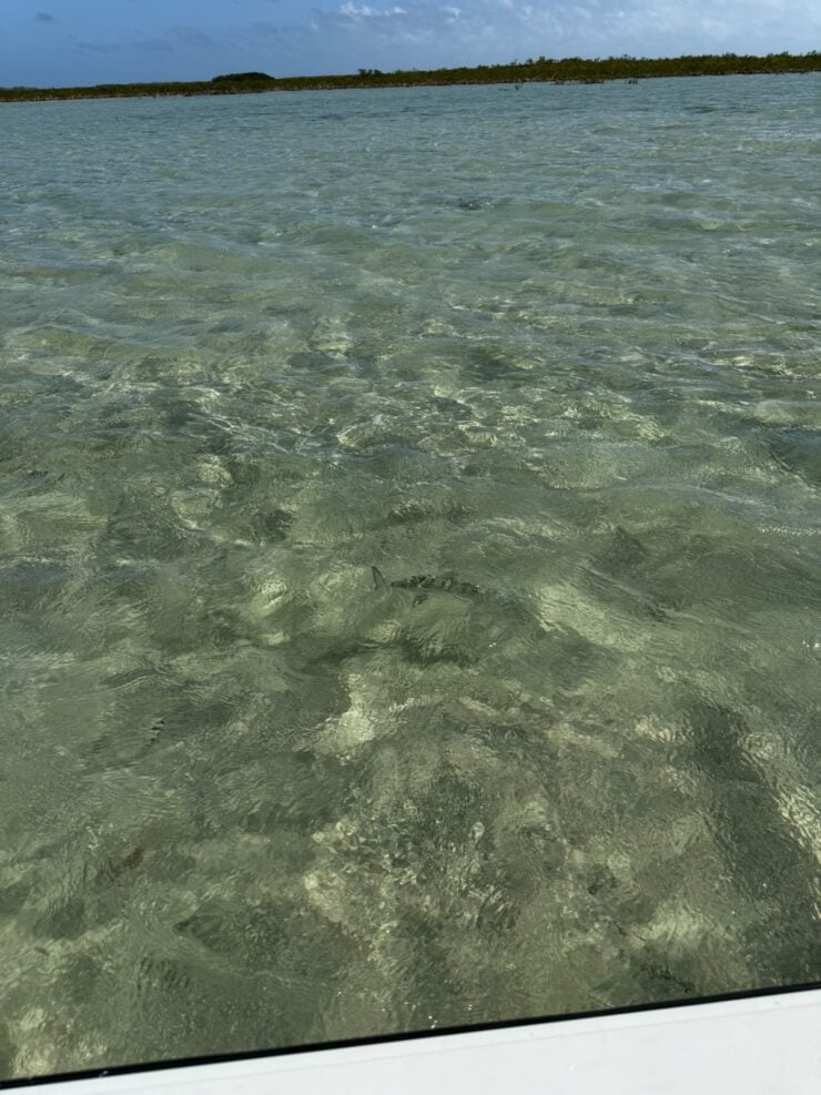 The ride out to the flats takes about 30 minutes through channels, cuts, and mangroves. When we arrived I understood why Andros has the reputation it does. The flat stretched out in every direction, one to two feet of water, scattered with small mangrove clusters. It’s enormous. And it looks completely empty until your guide starts pointing.