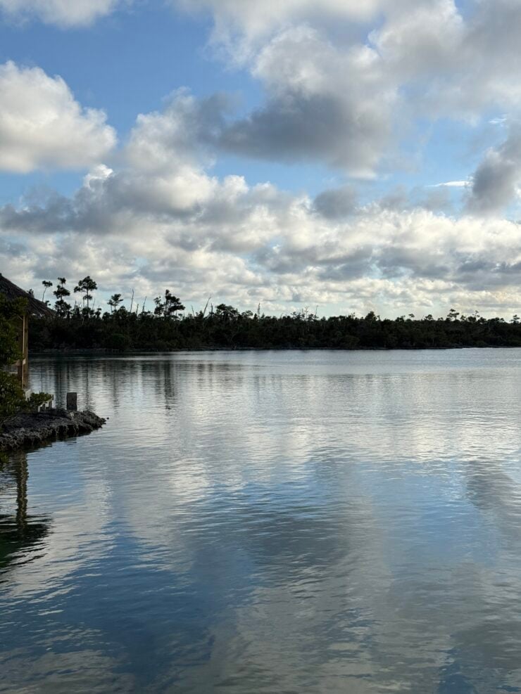 Stafford Creek sits on North Andros, tucked away from anything resembling tourist infrastructure. The cottages are spread along the creek, each with a private deck overlooking the water. Inside you get two queen beds, air conditioning, a mini fridge stocked with drinks, a coffee maker, and practical touches that matter after a long day on the flats, rod holders, wading boot drying racks, boat towels. In the early mornings, dolphins swim up the creek to feed. It’s that kind of place.