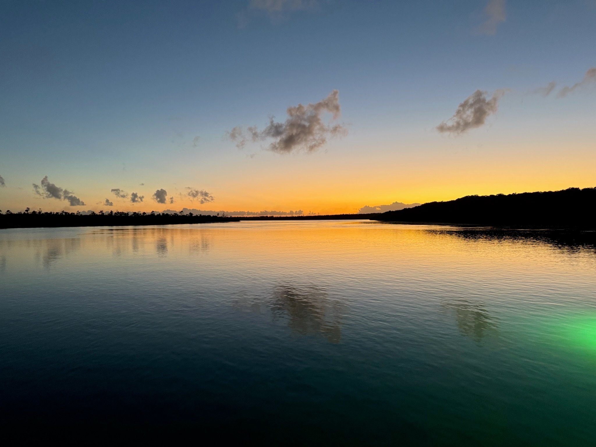 The ride out to the flats takes about 30 minutes through channels, cuts, and mangroves. When we arrived I understood why Andros has the reputation it does. The flat stretched out in every direction, one to two feet of water, scattered with small mangrove clusters. It’s enormous. And it looks completely empty until your guide starts pointing.