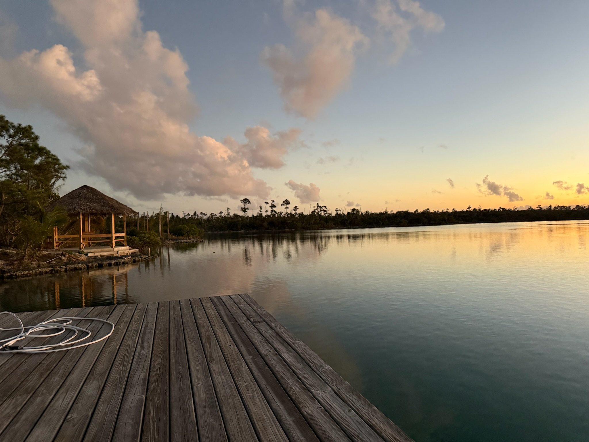 Stafford Creek sits on North Andros, tucked away from anything resembling tourist infrastructure. The cottages are spread along the creek, each with a private deck overlooking the water. Inside you get two queen beds, air conditioning, a mini fridge stocked with drinks, a coffee maker, and practical touches that matter after a long day on the flats, rod holders, wading boot drying racks, boat towels. In the early mornings, dolphins swim up the creek to feed. It’s that kind of place.